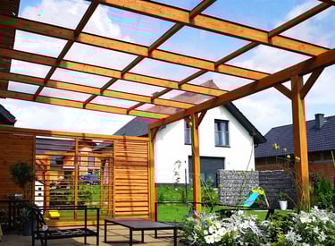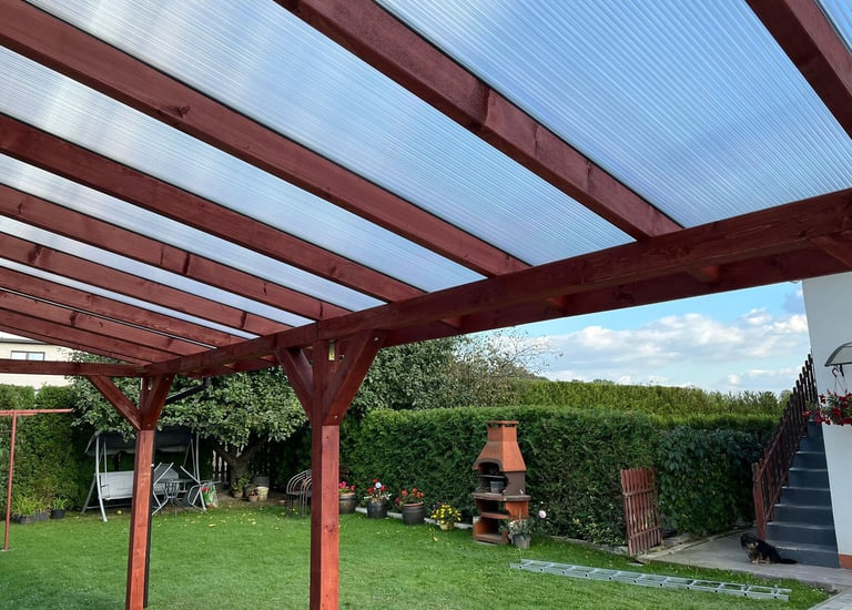 Montujemy zadaszenia tarasów z poliwęglanu litego i komorowego dopasowane do nowych lub istniejących konstrukcji drewnianych, stalowych i aluminiowych. Każde zadaszenie realizujemy na wymiar z uwzględnieniem warunków technicznych budynku, kąta nachylenia dachu oraz Twoich oczekiwań.